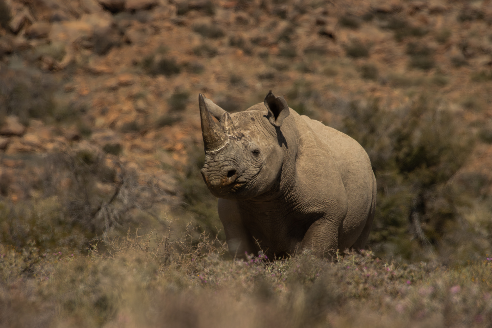 On the 23rd, we spent the day driving the full Potlekkertjie Loop along with the Afsaal Loop. As I mentioned earlier, this is the park’s main route, and along the way we came across plenty of mountain zebras, gemsbok, springbok and magnificent greater kudus, as well as a few chacma baboons, yellow mongooses, and rheboks. When it came to birds, we spotted a couple of striking Verreaux’s eagles, and mousebirds were abundant—both white-backed and red-faced species. We also got lucky with sightings of acacia pied barbets, pririt batises, and the charming but elusive fairy flycatcher. As a perfect ending to the day, while on the Afsaal Loop, we were lucky enough to spot an impressive black rhinoceros and a pair of Karoo korhaans.