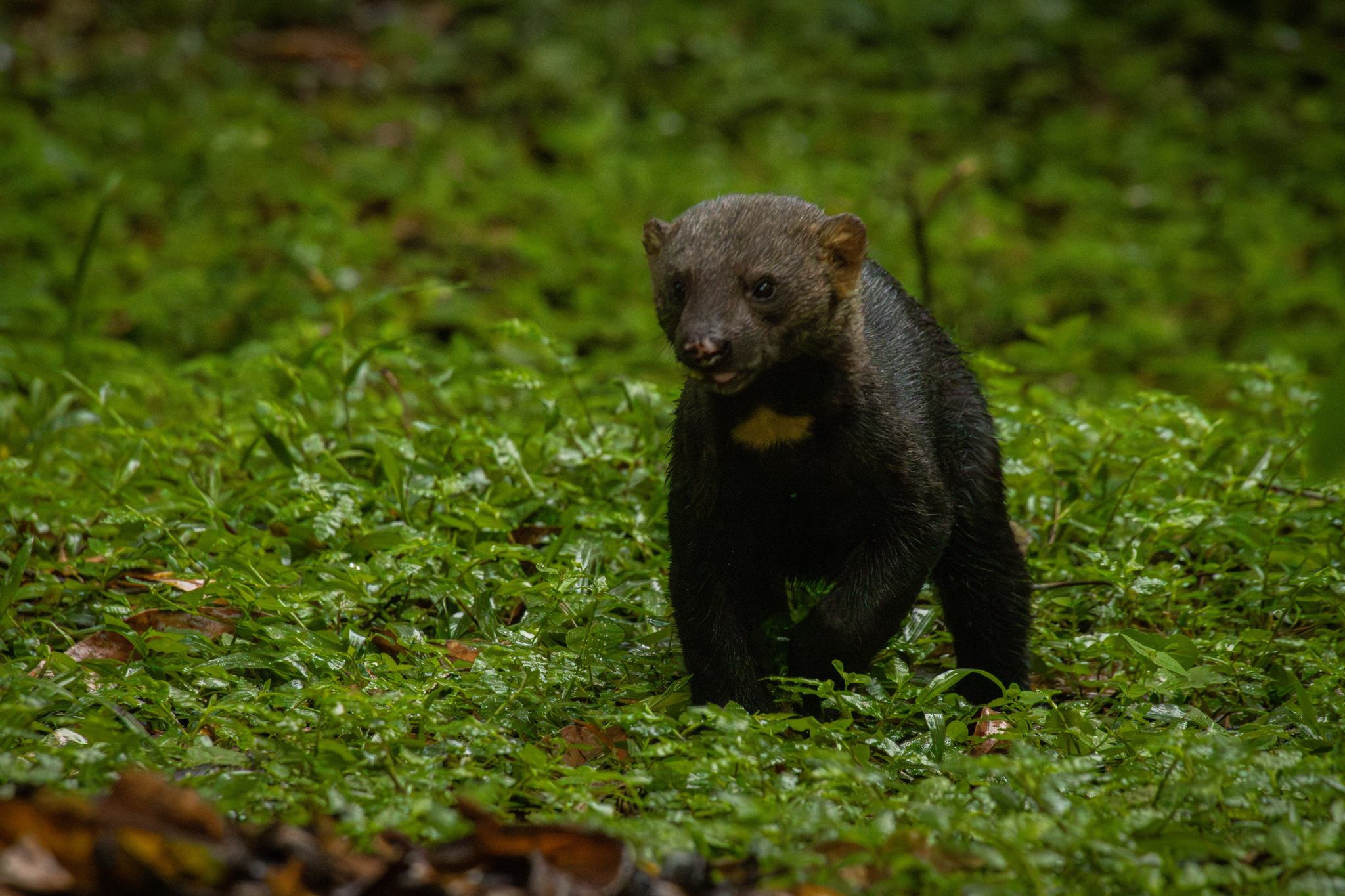 The lodge is located very near to the road, at these coordinates: 5.852252, -76.182564. It has several rooms and a dining area. In addition, there is an interesting garden, with views to a big river, with abundant feeders that attract various hummingbirds, tanagers, and even a tayra.